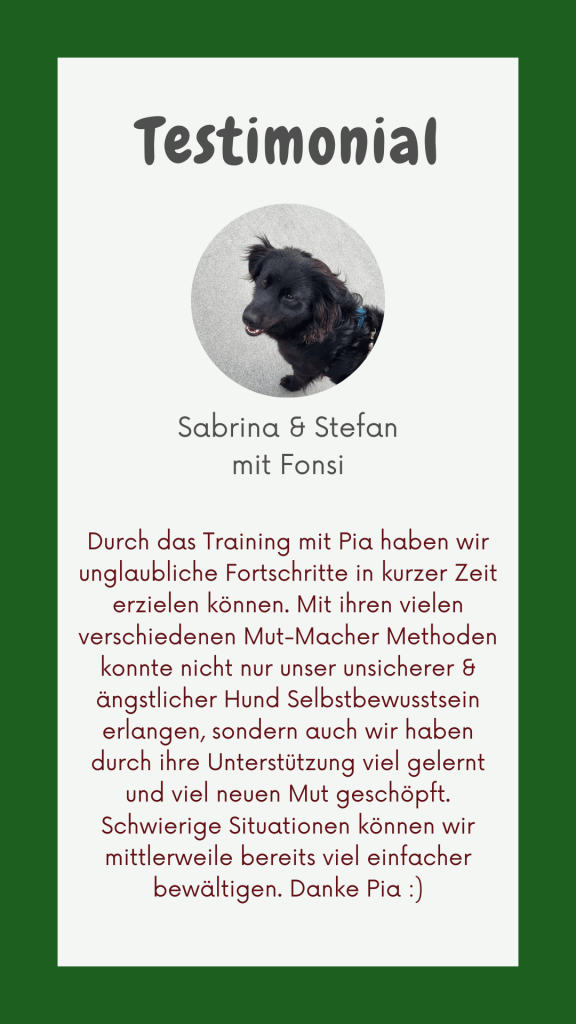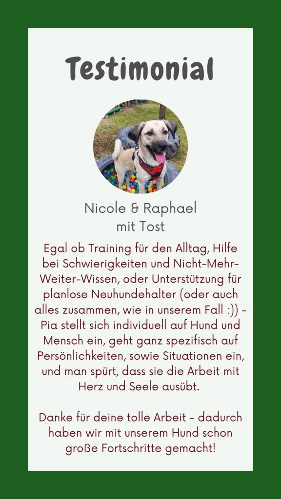 Schreibe mir eine Nachricht an kontakt@diepfotentruppe.com und ich melde mich mit Terminvorschlägen!