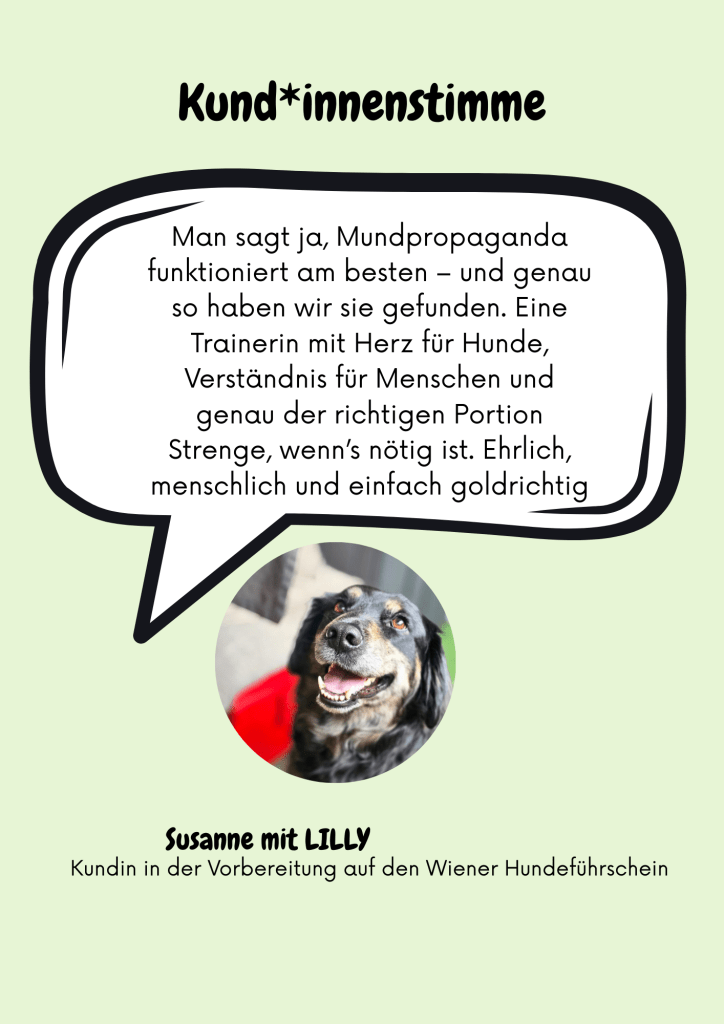 - Der Wiener Hundeführschein: Er ist Pflicht für Listenhunde und Hunde mit behördlicher Anordnung, z.B. nach einem Beißvorfall. Bei behördlicher Anordnung kommen 10 verpflichtende Trainingsstunden hinzu, um die Prüfung ablegen zu dürfen.